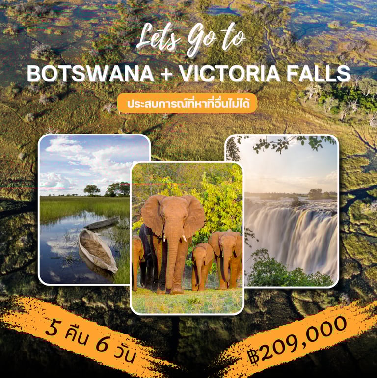Enjoy luxury stays for 5 nights and a Mokoro safari, gliding through lotus-filled waters while spotting wildlife.